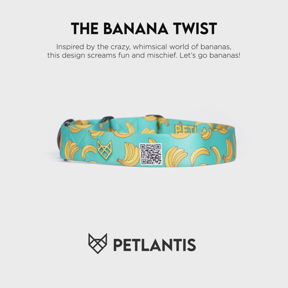 The PETLANTIS Dog Collar in the playful Banana Twist Design is inspired by the quirky charm of bright yellow bananas. This fun and energetic design brings a touch of whimsy and joy, making it the perfect accessory for pets who love to “go bananas” with their adventurous spirit.