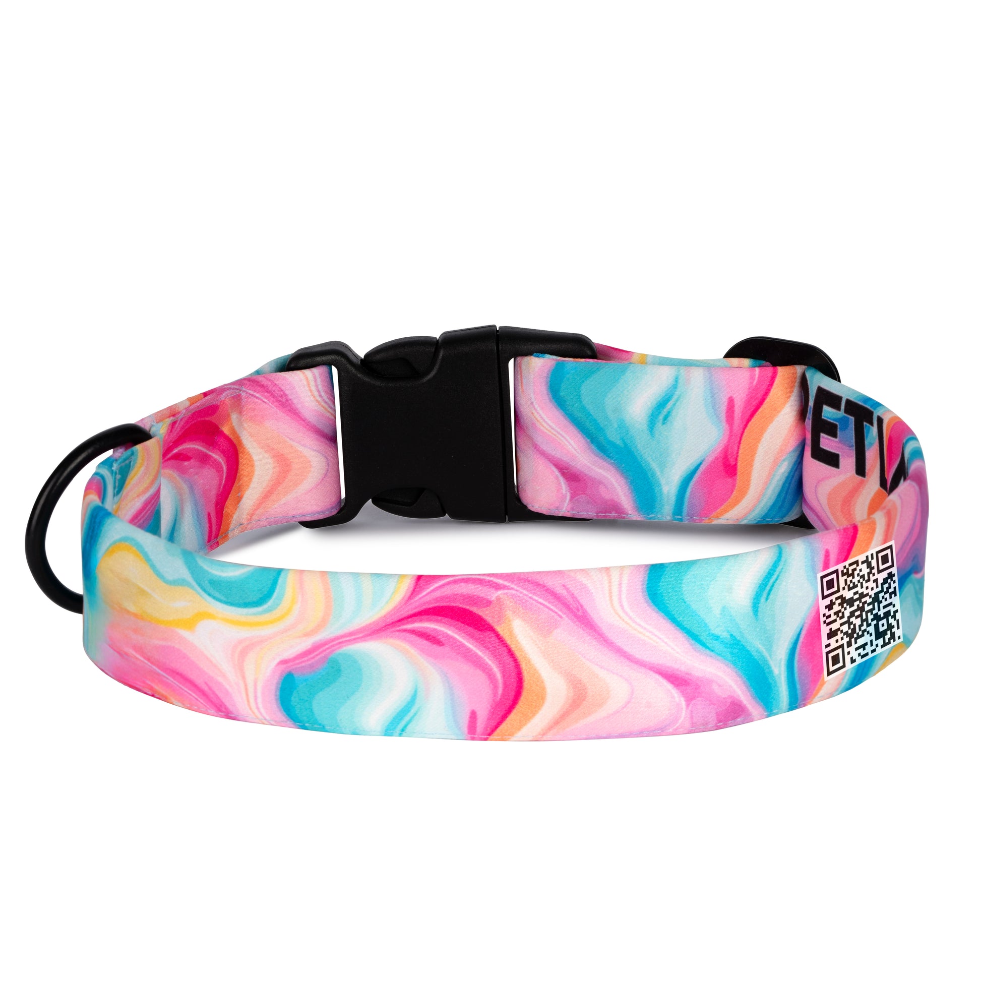 The PETLANTIS Dog Collar in the whimsical Candy Wave Design is inspired by swirling pastel hues and the playful sweetness of candy. This vibrant design adds a fun and lively touch, making it the perfect accessory for pets who bring joy and energy to every moment.