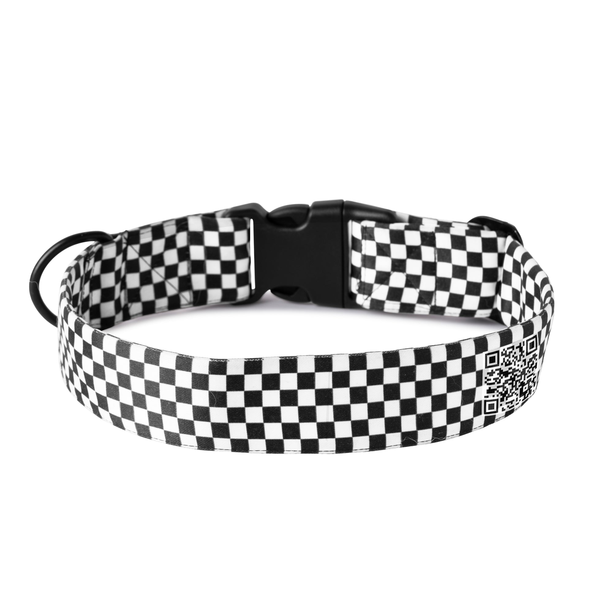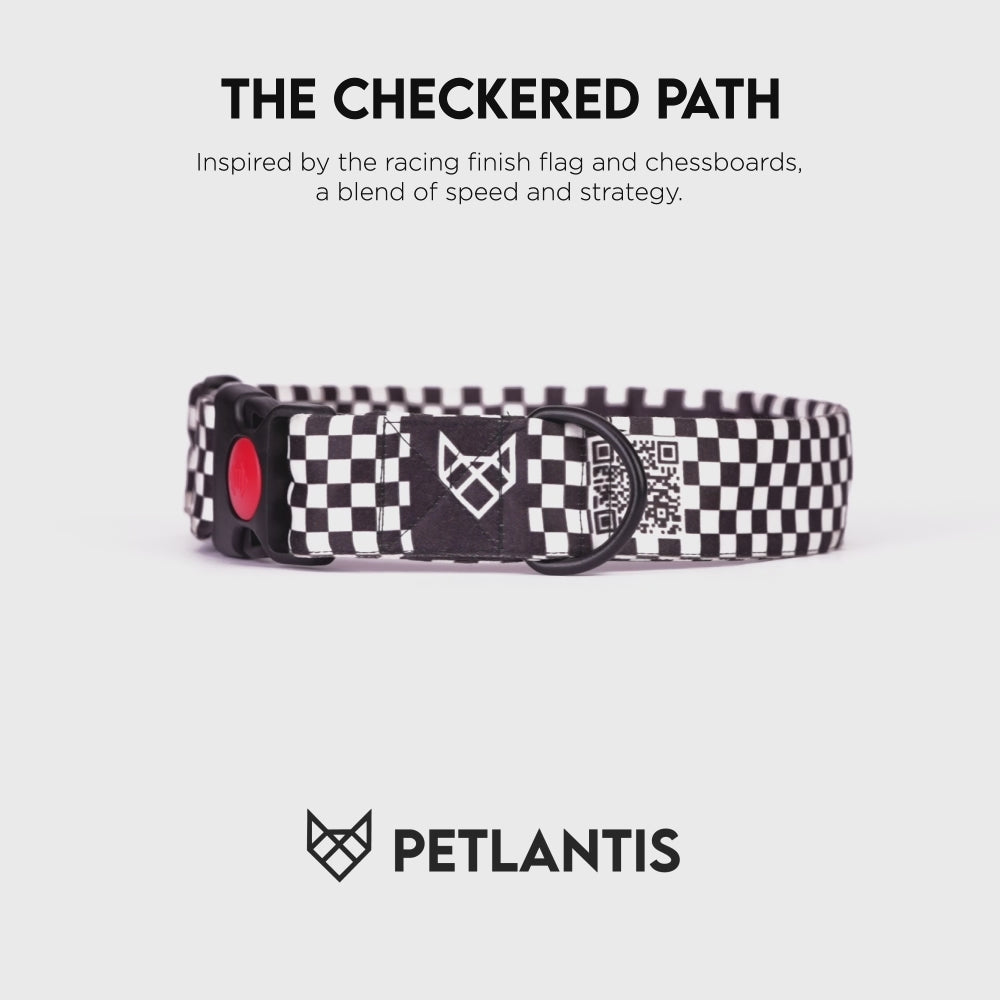 The PETLANTIS Dog Collar in the striking Checkered Path Design is inspired by the bold patterns of racing flags and chessboards. This timeless design symbolizes precision, strategy, and speed, making it the perfect accessory for pets who walk with confidence and flair.