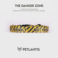 The PETLANTIS Dog Collar in the bold Danger Zone Design is inspired by striking hazard patterns, serving as both a stylish accessory and a visual cue for others to maintain distance. This design is perfect for pets who need their space while making a strong statement.