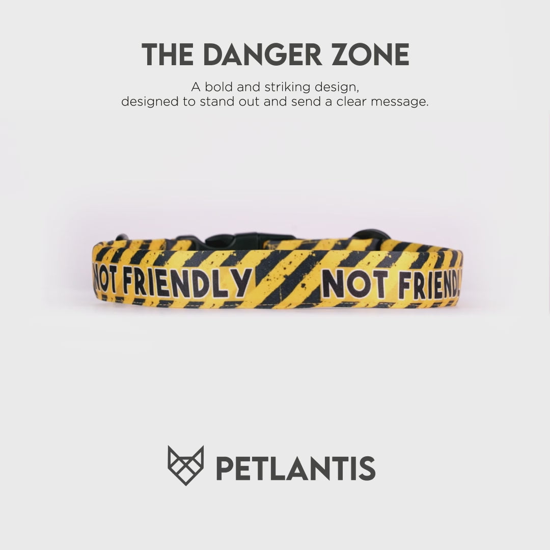 Made with water-resistant and odor-free materials, the Danger Zone collar is durable, fresh, and easy to maintain. The bold hazard-inspired design ensures your pet's safety and comfort while adding a touch of unique style to their look.