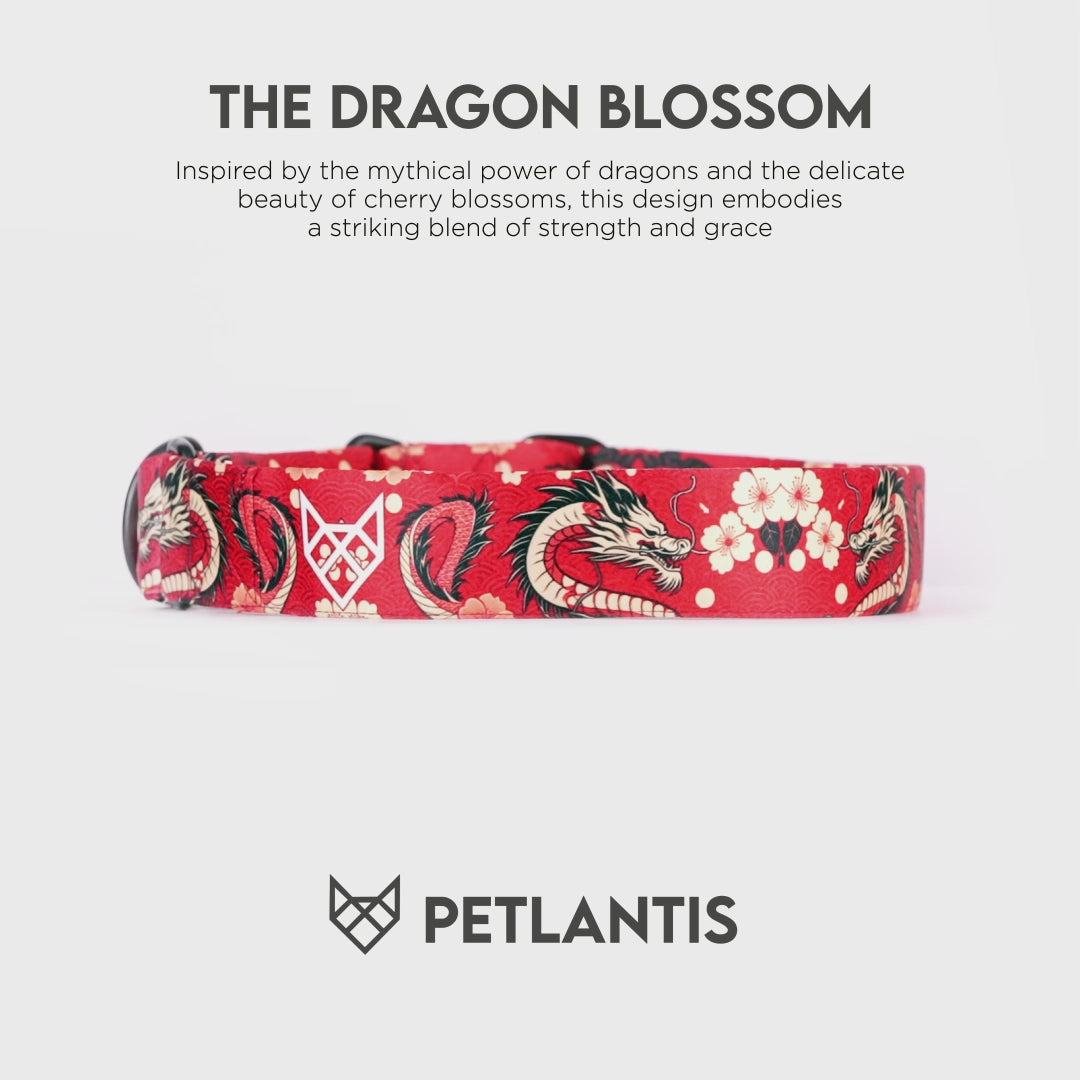 The PETLANTIS Dog Collar in the bold Dragon Blossom Design is inspired by the mythical power of dragons and the delicate beauty of cherry blossoms. This unique blend of strength and elegance makes it a striking accessory for pets who embody confidence and charm.