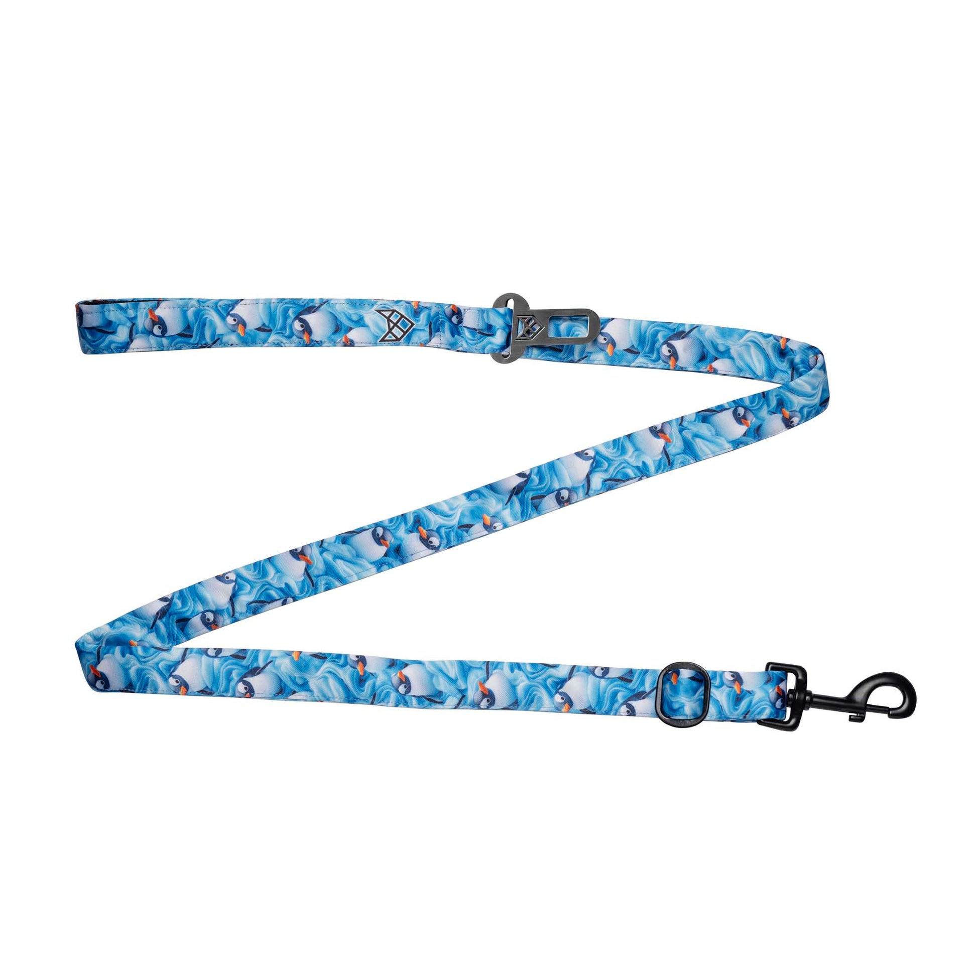 The Petlantis Penguin Drift Dog Leash is inspired by the playful elegance of penguins gliding across icy landscapes, capturing the cool beauty of winter and the lively spirit of these beloved creatures. Perfect for pets with a cheerful personality, this leash combines fun and functionality. Featuring an adjustable length with an anti-slip adjuster, you can easily customize it to suit any situation, whether you're keeping your dog close or allowing them room to explore. The ergonomic padded handle ensures comfort with breathable mesh, while the anti-rust black-coated clip provides durability and a sleek look. Designed for safety and convenience, it includes a built-in seat belt clip for secure car rides and a poop bag hanger for easy access. Crafted with a strong three-layered construction, this leash is water-resistant, odor-free, and easy to clean, making it ideal for everyday walks or outdoor adventures. The Penguin Drift Design adds a touch of frosty charm, ensuring your pet stands out with a playful, adventurous spirit wherever they go.
