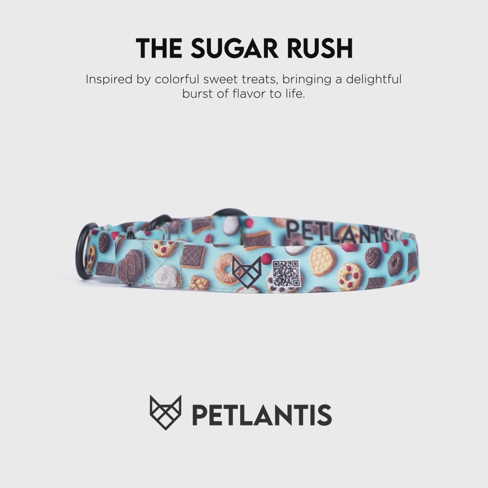 The PETLANTIS Dog Collar in the vibrant Sugar Rush Design is inspired by the colorful charm of sweet treats and playful patterns. This cheerful design is perfect for pets who bring energy, joy, and fun to every moment.