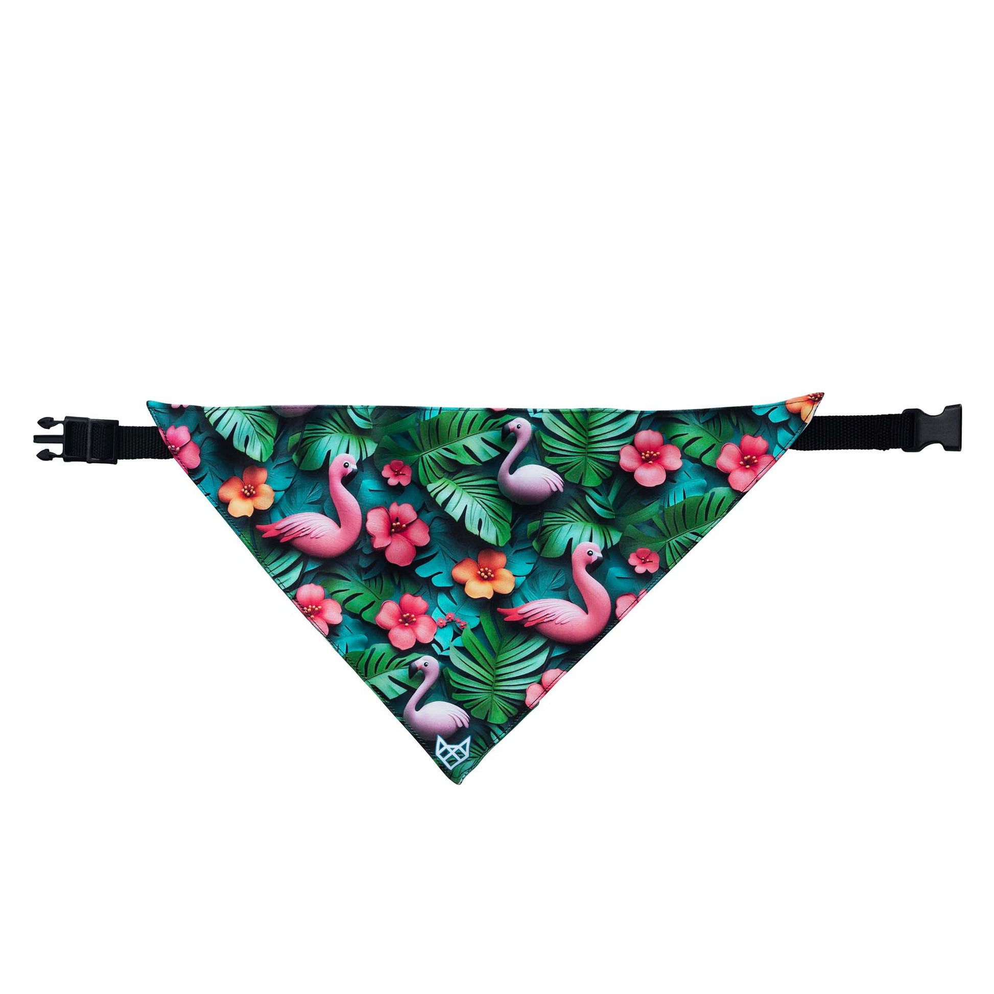 Let your pet step into a tropical paradise with The Summer Escape Bandana. Featuring vibrant flamingos, lush greenery, and colorful flowers, this bandana brings the essence of a sunny, carefree getaway to your pet’s wardrobe. Perfect for both dogs and cats, it’s the ideal accessory for pets who love to bask in the warmth of summer vibes.