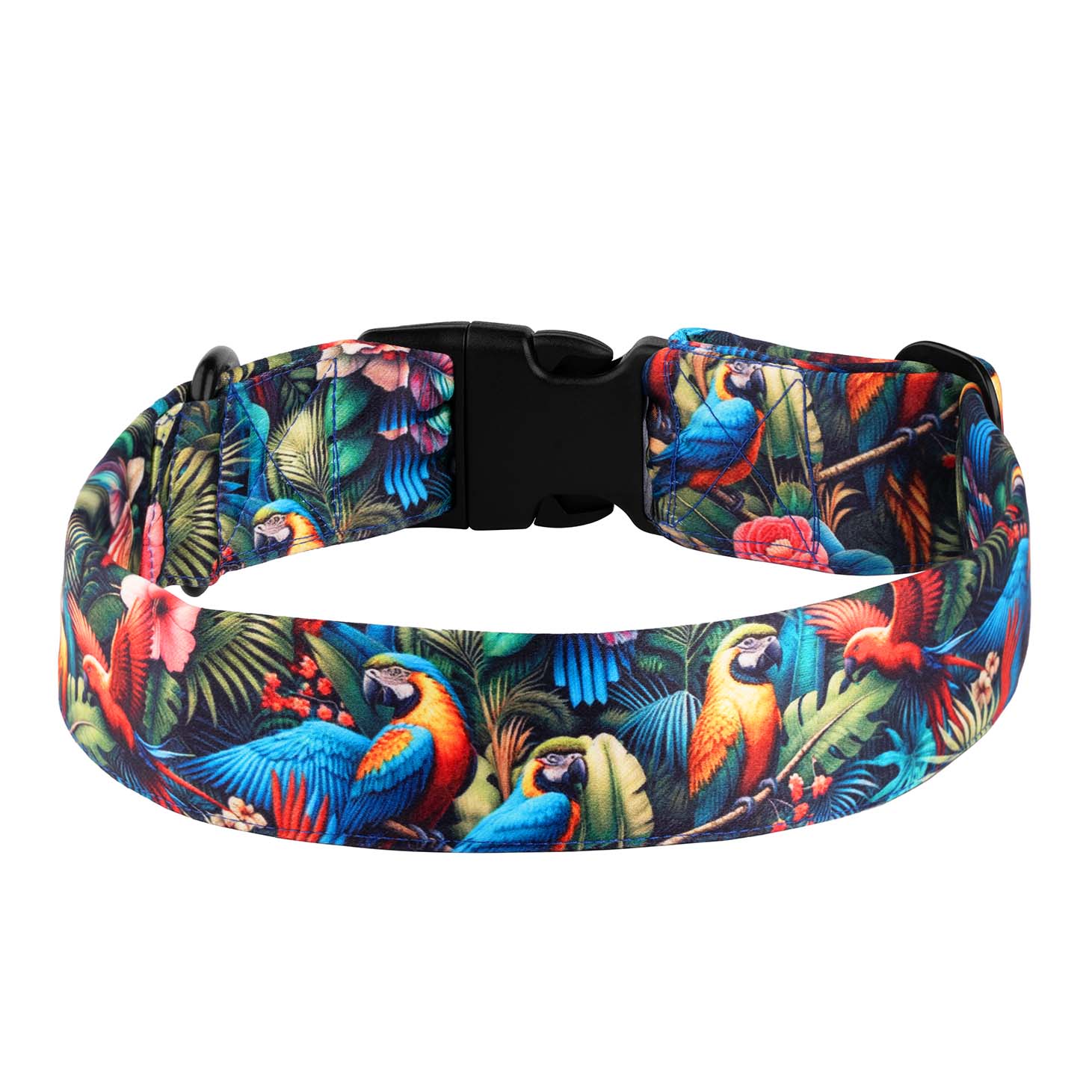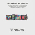 The PETLANTIS Dog Collar in the vibrant Tropical Parade Design is inspired by the lush beauty and lively colors of tropical rainforests. Featuring bold, exotic patterns of tropical birds and flora, this collar captures the energy and diversity of the tropics, making it the perfect accessory for pets who brighten every moment.