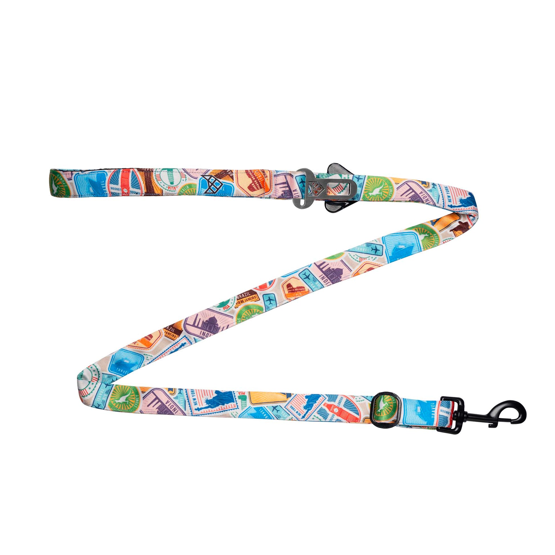 The Petlantis Wanderlust Dog Leash is designed for the adventurous spirit, featuring vibrant travel stamps that capture the excitement of exploration and discovery. Perfect for pets with a love for travel, this leash is both functional and stylish. With an adjustable length and anti-slip adjuster, you can easily control how close or free your dog is during your adventures, whether you're on a hike or a casual walk. The ergonomic padded handle ensures comfort, with breathable mesh that keeps your hands cool and secure, while the anti-rust black-coated clip adds durability and a sleek touch. For safety, it includes a built-in seat belt clip for secure car travel, along with a convenient poop bag hanger. Crafted with a strong three-layered design, this leash is water-resistant, odor-free, and easy to maintain, making it perfect for everyday use or outdoor excursions. The Wanderlust Design celebrates the spirit of travel, adding a unique and adventurous flair to your pet’s gear while ensuring comfort and safety.